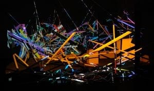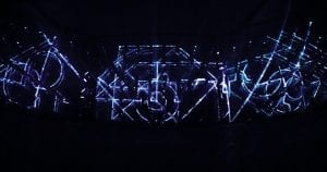In FLUX, a virtual reality world is created which generated designs of light and form that then appeared as digital prints on shirts.