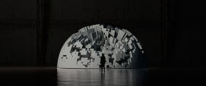 Corfield’s work begin with a process of digital experimentation, where 3D modelling, simulations and animations are among the techniques used.