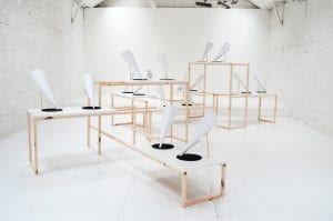 Referencing composer John Cage’s interest in chance, Finch creates a dialogue between visual aesthetics, interaction & auditory perception.