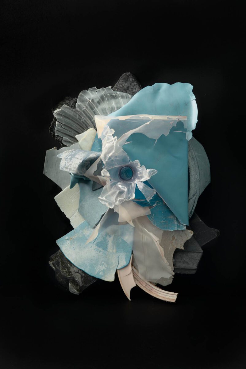 TS: My storage space is a small garden shed, where the former owner used to repot her plants. Once I’m in there, I just follow what appeals to me at a certain moment. It’s about what pieces fit together – like a puzzle. Simply documenting the washed up, eroded plastic findings wasn’t doing justice to the beauty of their colours and textures. I decided to sepa- rate them from any reference to their original environment, so that they became stand-alone objects – the basis of my compositions. One hundred years ago, the Surrealists coined the concept of “écriture automatique” – automatic writing – in which the hand does its own thing, unconsciously. When working on Plastic Ocean, I practice “sculpture automatique.”