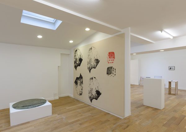 The die seems to dice with death in a work that greets you at the entrance to the show. A massive, green-tinged, circular marble slab lies shattered at the edge by one of Maire’s little cubes of chance. This minimalistic installation sculpture infuses the marble with a pleasingly broken biscuity look, conversely endowing the die with the weight and force of a miniature meteorite. The fractured marble slab is also self-referential in that it adumbrates the role of the unexpected in the sphere of the perfectly rounded well-made, man-made artwork.