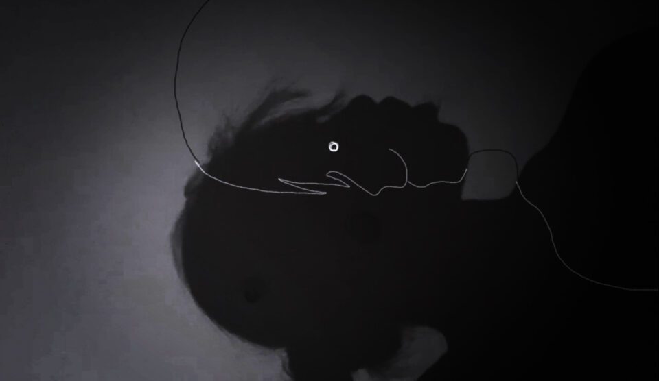 Here, Cheng engages with the ongoing legacy of contemporary artists who have subverted textile traditions to foreground women’s voices. There are echoes of Judy Chicago, whose Birth Project (1980-1985) brought together 150 needleworkers; and Kimsooja, whose practice has long incorporated sewing and weaving to investigate the role and representation of women in society. One might also be reminded of Ana Mendieta’s “earth-body” works, which saw the artist’s silhouette inscribed into various landscapes. There’s a throughline between Mendieta’s Siluetas and Cheng’s personal works. Dancing with the Line (2021) is a hand-drawn, frame-by-frame animation based on a recording of Cheng’s shadow dancing in a dimly lit room. The artist then redrew each shot by hand, creating an intimate dialogue with her body.