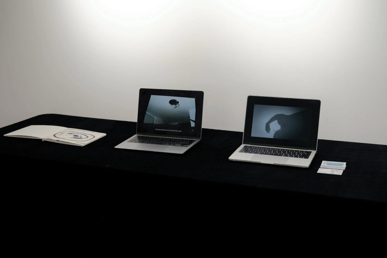 The piece is divided into two chapters – one from a woman’s perspective, the other through the eyes of a child – and interweaves intimate domestic imagery: bedsheets, shopping bags and traces from the artist’s bedroom. The soundscape is built from recordings made within the artist’s living space, contributing to the psychological atmosphere. Everyday noises – chopping vegetables, closing doors, footsteps and pouring tea – run throughout. Silent Absence evokes the rhythms of daily life, “in which violence can become both invisible and omnipresent.” Similarly, non-verbal storytelling is key to Relation (2022), a wordless book that unfolds entirely through images, allowing readers to interpret it across cultures and languages.