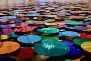 Liz West’s captivating exhibition turns Mercer Art Gallery into a playful, luminous realm of constantly shifting light, reflections and saturated colour.
