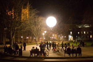 A Fake Moon rises over College Green, Bristol and invites you to pause and contemplate the passage of time: drawing a slightly stilted, yet wonderfully poetical arc across a Valentine’s Evening sky.