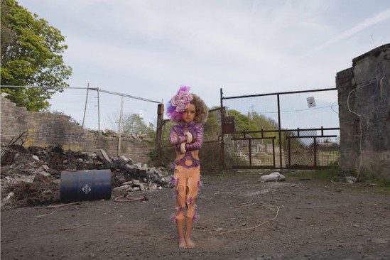In the works by Zoe Murdoch, Maria McKinney, Shaleen Temple and Carrie McKee there is a polar presence of escapism and capture. Murdoch’s sensitive and melancholic sculpture Oh Muse Be Near Me Now and Make a Strange Song is dedicated to a long distanced correspondence. The anatomical objects and printed text contained within the small wooden box form clues to the artists’ reflection on the frustrations of a relationship spent apart. Maria McKinney examines the pursuit of leisure time and the activities devised to combat monotony in an appropriated jigsaw composition The Earl of Leicester. The photographic portraits by Temple and McKee poignantly narrate the condition of each of their subject’s entrapment. From the series entitled Boys and Girls, Temple’s documentation of South African servants exposes a world of subordination and subservience. The artist’s subject, Jerita stands tentatively in the interior of her employer’s home in Johannesburg. The red wall’s arch and dark wooden furniture frames and engulfs Jerita, the very objects that define her occupation seem to imprison her. Temple draws attention to these domestic servants who would otherwise be overlooked and in so doing she credits them with the recognition that they deserve. McKee chooses the backdrop of derelict Belfast cityscapes for her stunning depictions of young dancers. In Orlaigh (2011), a girl poses defensively with her arms folded; she is dressed in a bright orange and fuchsia coloured costume, a large pink blossom frames her face. This beautiful, ‘tiger lily’ sprouts with strength and determination from the desolate wasteland, waiting for her hopes and aspirations to be fulfilled.