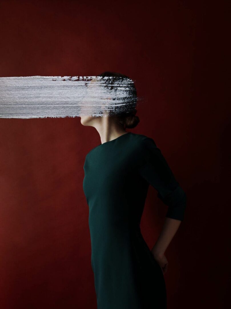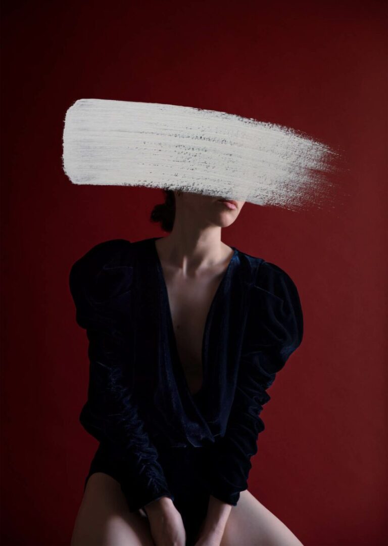 The history of paint is filled with intriguing stories. In The Anatomy of Colour (Thames & Hudson), Patrick Baty recounts several such anecdotes, each tied together by desire, risk and a quest for perfection. During the 18th century, Prussian Blue was considered an “extraordinary colour” that cost twice as much as others. In Germany, Vermilion Red, of which “there was nothing quite like”, was produced by combining sulphur and mercury, and was also used as a sedative. It wasn’t until 1880 that William Morris stopped using poisonous Arsenic Green in his wallpapers. Today, similarly intoxicating jewel tones are the hallmark of Andrea Torres Balaguer’s (b. 1990) photographic portraits. The pictures could easily be mistaken for classical oil paintings. Garnet red and emerald green are backdrops for gold silk blouses and deep velvet gowns. A single, confident brush stroke cuts straight across each face, cloaking the subject in anonymity.