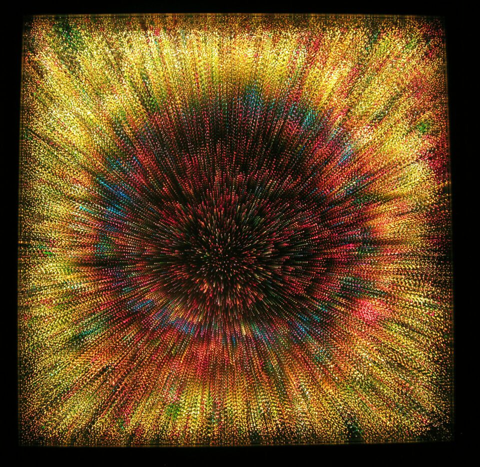 1. Ivàn Navarro Nebula I (Detail), 2020. LED light, wood, aluminum, glass paint, glass, mirror, one-way mirror and electric energy 121.9 x 121.9 x 15.2 cm – 48 x 48 x 6 in. © Courtesy Templon, Paris – Brussels.