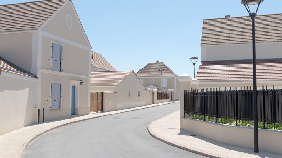 However, incorporating collective ideas into the landscape is not always effective, an idea that Victor Micoud (b.1987) unpicks in La Cité Idéale. The series, which is featured in the current issue of Aesthetica [link], navigates Marne-la-Vallée, the new purpose-built residential town on the outskirts of Disneyland Paris. At first glance, the images seem to depict picture-perfect suburbia, the backdrop of a film in which magic exists. Once this subsides, however, the blackened chimneys, omnipresent security cameras and eerie silences are evident. The clean lines and pastel colours that adorn the housing would seem, in theory, to epitomise utopian ideas for a safe, sustainable future. Yet, at the edges of the housing estate, luscious grass turns to mud and rubble.