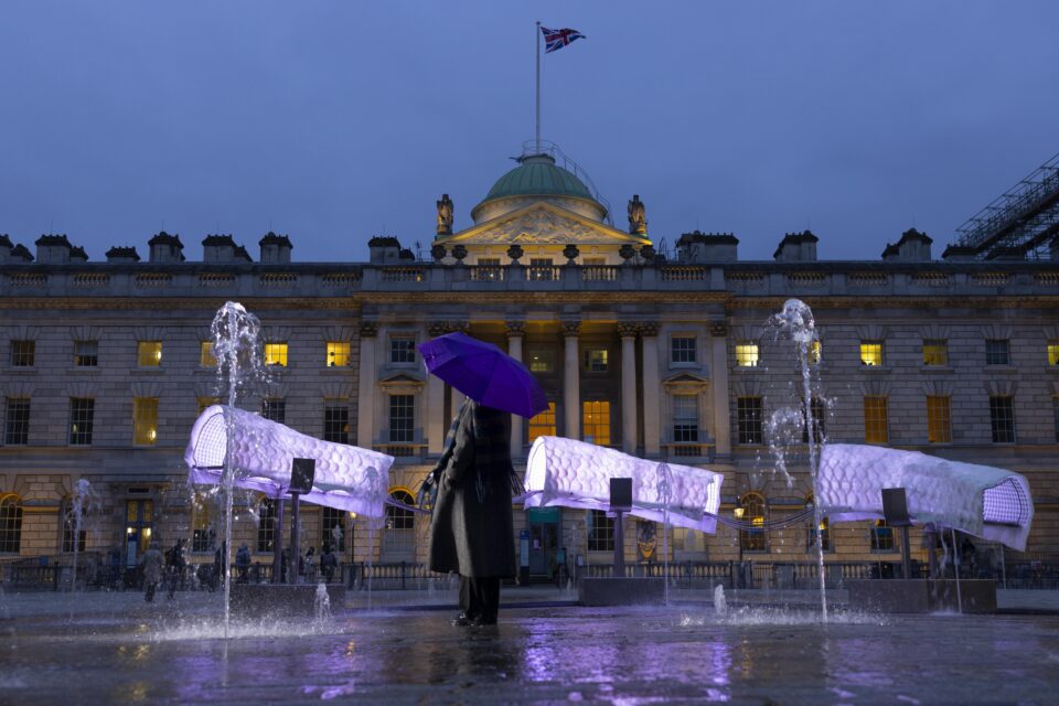 DFA: Presenting the work in Somerset House’s courtyard makes it part of everyday life rather than a closed gallery setting. People can encounter it unexpectedly, from different angles and at different times of day. The openness of the space encourages curiosity, reflection and conversation, and allows audiences of all ages to engage with the work on their own terms. It’s a great way to reach a large and diverse public.