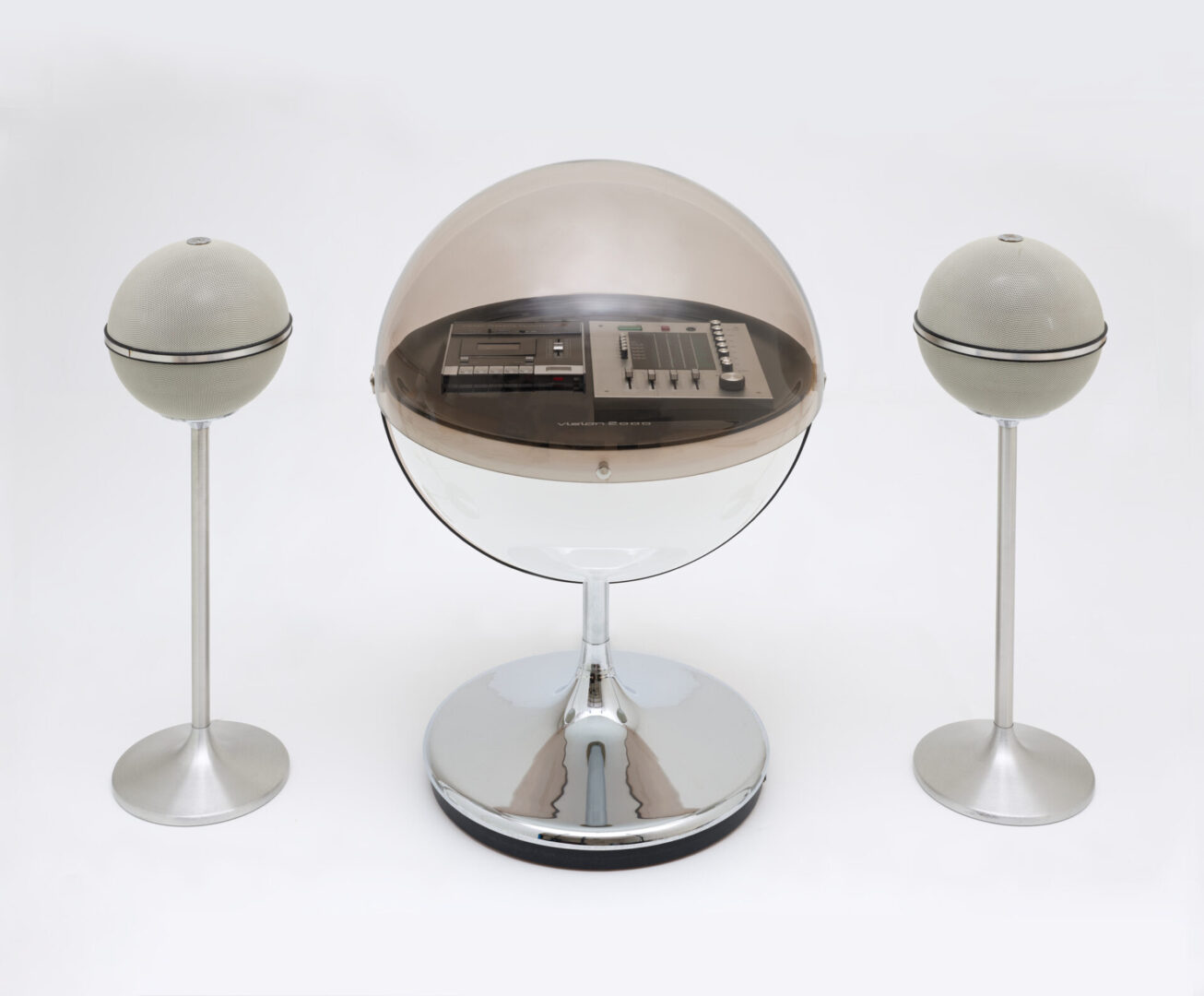 1. Thilo Oerke and Rosita Tonmöbel, Rosita Vision 2000, 1971; San Francisco Museum of Modern Art, Accessions Committee purchase, by exchange, through a gift of Michael D. Abrams; photo: Don Ross OR Mario Bellini, Pop Automatic Record Player, 1968; San Francisco Museum of Modern Art, bequest of the George R. Kravis II Collection; photo: Katherine Du Tiel.