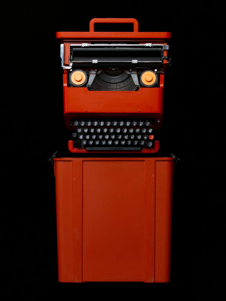 5. Ettore Sottsass (1917–2007), Perry A. King (* 1938), Schreibmaschine „Valentine“ für Olivetti, 1969, MK&G, Foto: Hans Hansen, © MK&G, © erede Ettore Sottsass | VG Bild-Kunst, Bonn 2025 | Olivetti.