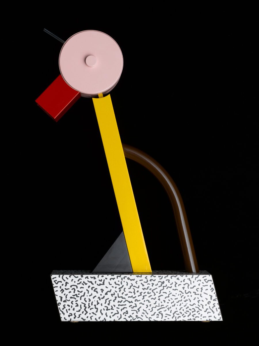 4. Ettore Sottsass (1917–2007), Tischlampe „Tahiti“, 1981, Holz, Stahl, MK&G, Foto: Hans Hansen, © MK&G, © erede Ettore Sottsass | VG Bild-Kunst, Bonn 2025.