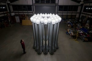 Gagosian New York displays one of the late Chris Burden’s last works. Buddha’s Fingers is a cluster of 32 antique cast-iron vernacular street lamps.