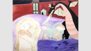 Buenos Aires-born, London-based artist Jazmin Donaldson explores storytelling within painting. Key influences include the richly-textured world of fairy tales and myths – she re-purposes known motifs to tell contemporary stories. Donaldson is particularly interested in women’s role in society.