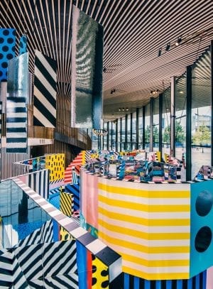 Known for a bold and playful use of colour and form, graphic artist Camille Walala creates interactive installations and large-scale murals.