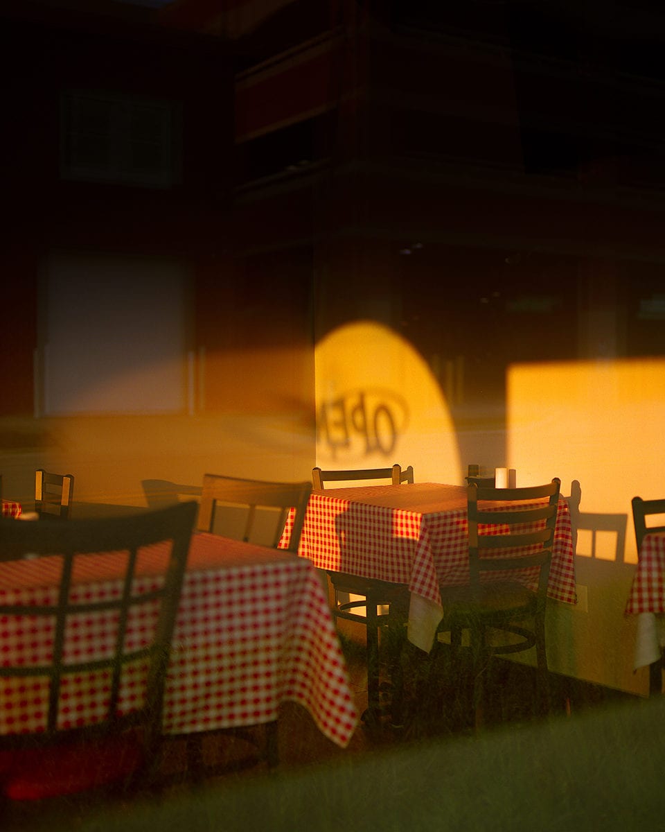 Thomas Jordan (b. 1992) is an American photographer, living and working in Illinois. He is influenced by the northwest Chicago suburbs, looking for moments of clarity in drawn-out nights. Pylons are set against burnt orange skies; decked houses emanate a warm yellow glow; branches are bleached out with high-contrast flash. These compositions transform everyday icons of roads, trees and houses into jewel-tone utopias. Using long-exposure, the images are at once dark and inviting, moving deftly around illuminated windows, artificial streetlights and closed front doors. The viewer is kept close to the buildings yet remains at a distance – never able to move inside, instead wandering around neighbourhoods with a sense of disconnect. Jordan accentuates the anonymity of domestic landscapes – where the sun is always setting and the streets are always empty. His images have been featured in The New Yorker, Aint-Bad and Phroom. thomasjordanphoto.com.