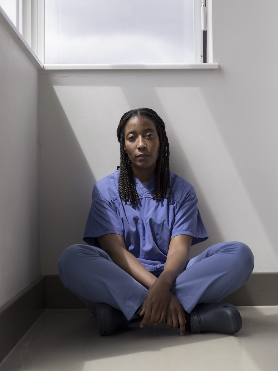 Other themes include Environment, which gathers works that reveal how place shapes the psyche. Whether through the comfort of home, the hardship of poverty or the tension of cultural complexity, they show how environments can nurture or constrain. Meanwhile, Human Vulnerability explores the portrayal of physical and mental illness through self-portraits and representations of the human form, addressing themes of love, obsession and loss, and the strength to be found in empathy and compassion. Johannah Churchill is a former nurse turned photographer whose images draw upon her experiences in healthcare. Her practice moves between portraiture and documentary and is characterized by “an emotional exploration of what it is to be human.” The Weight of Being features a selection of portraits of NHS workers taken during the Covid-19 pandemic lockdowns and restrictions. The images, showing individuals in protective equipment and masks, their exhaustion and emotional burden are palpable.