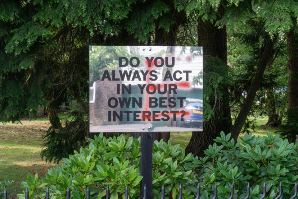 7. Mark Titchner, Do You Always Act In Your Own Best Interest, 2019, digital print on aluminium. All Rights Reservec. DACS 2025. Courtesy of Bethlem Museum of the Mind