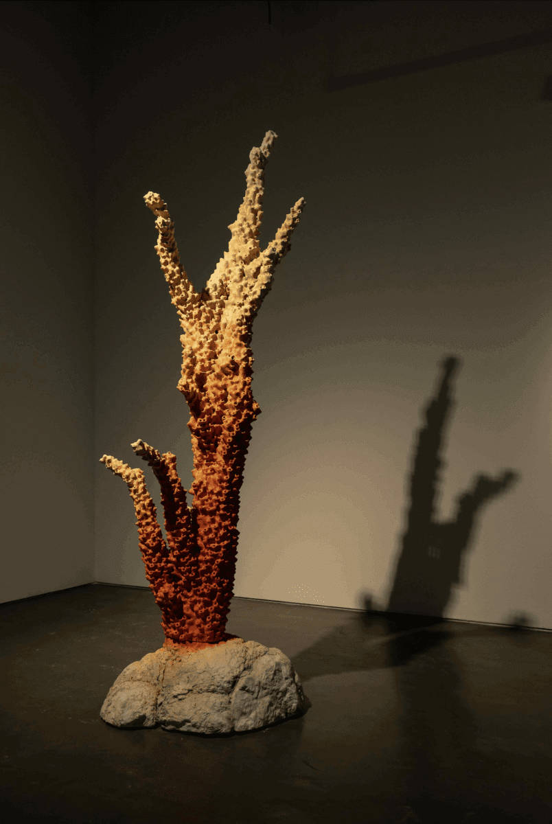 5. Shezad Dawood, Ghost Reef II, 2024, composite sand print and luminescent paint finishes, 220 x 75 x 75 cm. Courtesy the artist, photo © Mohamed Alaskandrani.