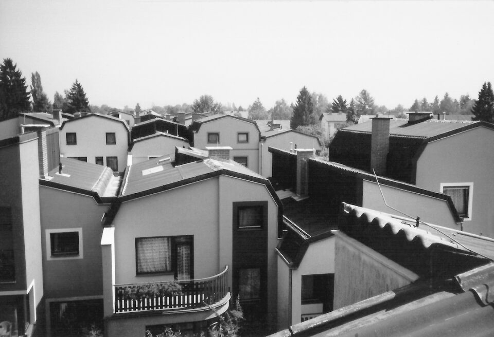 2. Doris Pollet – Kammerlander. Private archive image of the finished houses of Gerlitzgründe, Graz, from a rooftop. (1996). ©: Doris Pollet – Kammerlander.