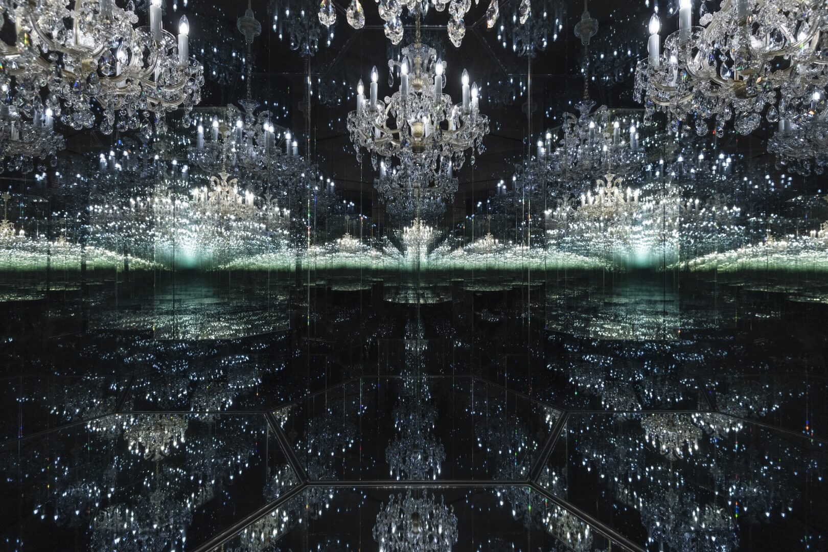 1. Installation view of Yayoi Kusama’s Chandelier of Grief 2016/18, Tate Modern, London Courtesy of Ota Fine Arts and Victoria Miro © YAYOI KUSAMA.