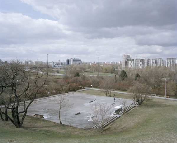 A: Compositionally, the images capture the skatepark as well as the surrounding area, what idea were you trying to convey with this approach?