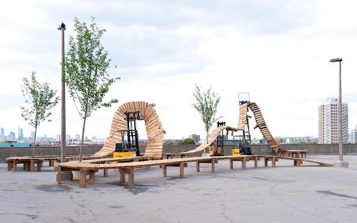 The immediate appeal of Bold Tendencies, particularly on a sunny day, irrespective of what the art is like, especially if you haven’t been before, is simply to visit the venue. Located on the top two floors and roof of a seven story car park in Peckham, the view is fairly epic, and since the temporary gallery space is complemented by having Frank’s Cafe and Campari Bar strapped onto the building it is a pleasure to be in the space itself. Specially appointed by the Curatorial Council, the 15 large-scale new works by international artists commissed for the space, take central stage.