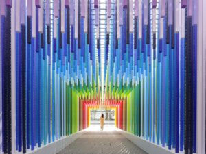 EM: Colour can create unlimited emotions. It can make people smile and laugh. It can offer energy, joy, surprise and most importantly, happiness. Colour is universal and eternal, borderless and infinite. Using the full spectrum in the context of a public space can expand on the location and redefine its parameters. It adds additional layers of humanity, by connecting to the visual and the visceral in new ways.