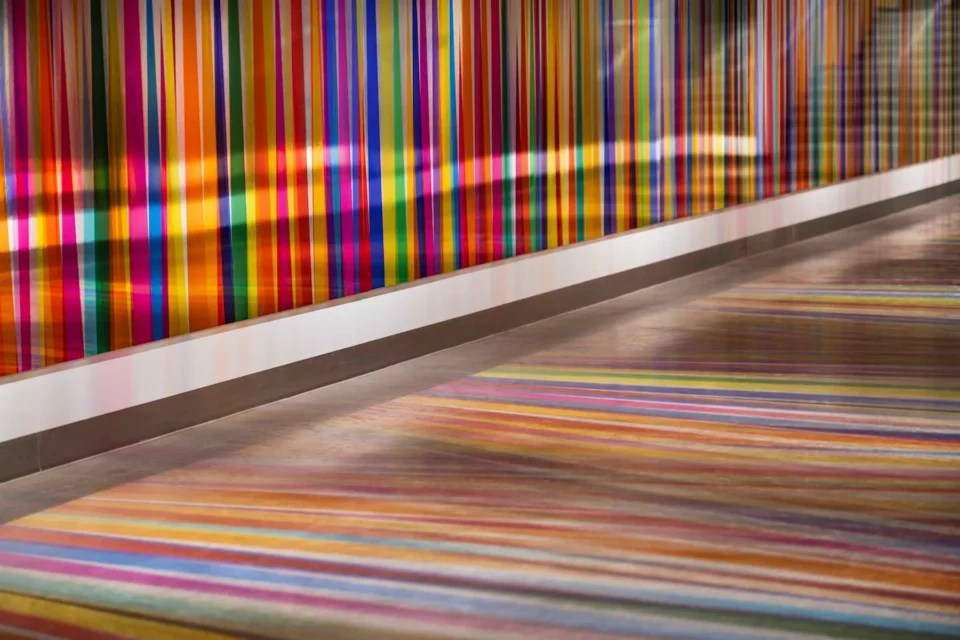 The unveiling of Double Fizz coincides with West’s inclusion in Future Tense, part of the Aesthetica Art Prize 2025. That installation extends her inquiry into the ways chromatic transitions shape emotion and time. Semi-transparent panels refract daylight into layered gradients, suggesting how our understanding of the future might be mediated through colour and light. Earlier works such as H.A.P.P.Y (2017) established West’s reputation for merging optical experimentation with psychological well-being. In that project, concentric corridors of coloured light explored how saturation could heighten mood and awareness. Both works reveal her ongoing fascination with the emotional potential of colour.