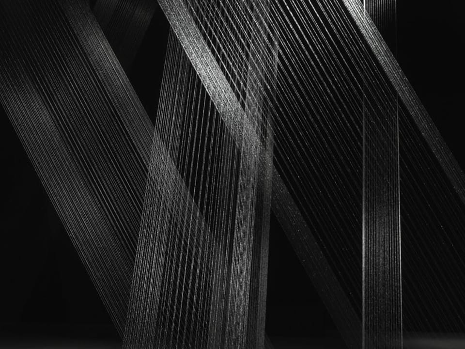 1. Lygia Pape, Ttéia 1C, 2001/2016. Silver thread, wood, nails, light. Dimensions variable. © Projeto Lygia Pape Photo: Ken Adlard.