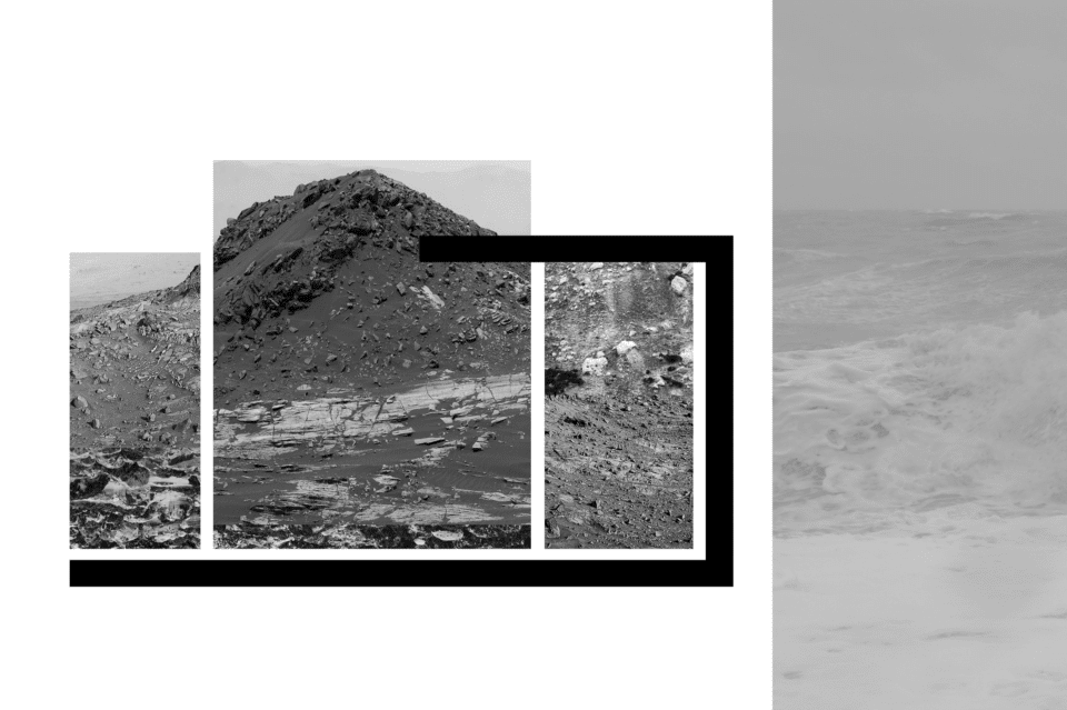 Mandy Williams uses photography, video and sound to expand traditional representations of landscape. She approaches socio-political issues in an experimental, aesthetic style, seeking to comment on urgent narratives through unexpected, diverse visualisations. Her project, England, examines the exclusionary politics of contemporary England through the metaphor of landscape. It includes a video, photographic series and a free newspaper with fold-out posters and interview texts. In the sequence of black and white photographs coastal landscapes are merged with alien geographies accessed from NASA, representing a landscape that has become unstable, and which causes harm. Black borders cut across these images.