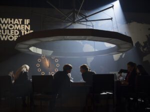 Collishaw is especially fascinated with the human desire to buy, collect and display plant-life. According to Statista, “UK households purchased approximately 6.11 billion British pounds worth of plants and flowers and other garden goods, considerably more than just two years before.” This trend has been steadily increasing over the years. The overwhelming majority of cut flowers are imported (86% in 2022), arriving from the Netherlands, Ecuador, Kenya and Ethiopia. Collishaw’s large-scale projection, Even to the End, explores the history of this trade and its catastrophic potential for the planet. The nine-minute sequence shows “an island teeming with tangled roots and dense forest” before it turns into a “charred, lifeless wasteland.” Participants are immersed in a Wardian case, an early protective container invented in 1829 to transport live plant specimens around the world. The video is accompanied by composer Samuel Barber’s Adagio for Strings. The haunting composition draws inspiration from Roman poet Virgil’s Georgics, which is about humanity’s efforts to cultivate the land despite the constant threat of destruction. Elsewhere, the series Heterosis presents hybrid blooms in NFT form. Collishaw makes them in collaboration with Danil Krivoruchko on the OG.Art platform using a combination of genetic algorithms with blockchain technology. Collectors can breed species of virtual buds to create brand new ones which are stored in a metaverse “Greenhouse.” The desire for flowers persists, regardless of whether they are physical or virtual.