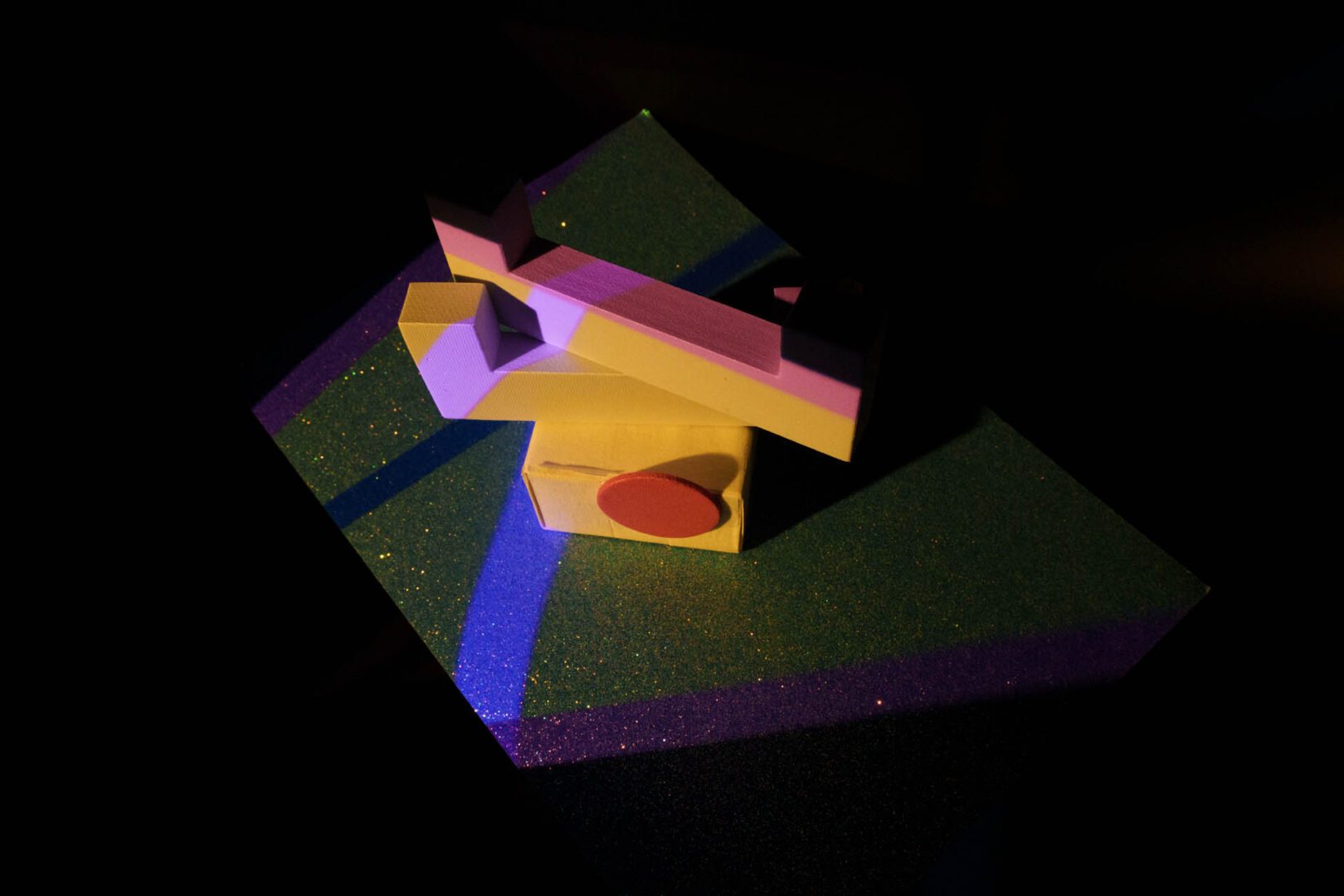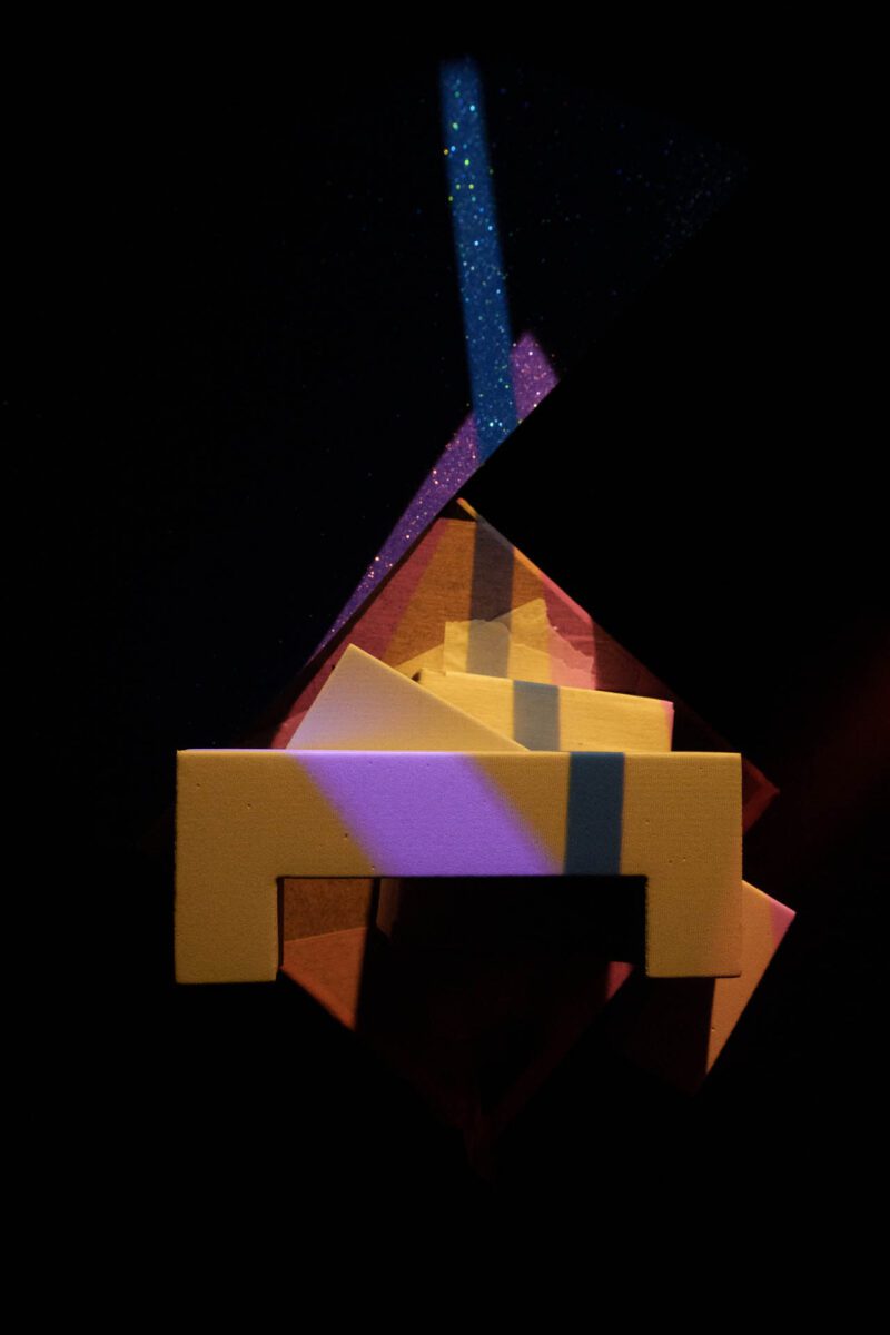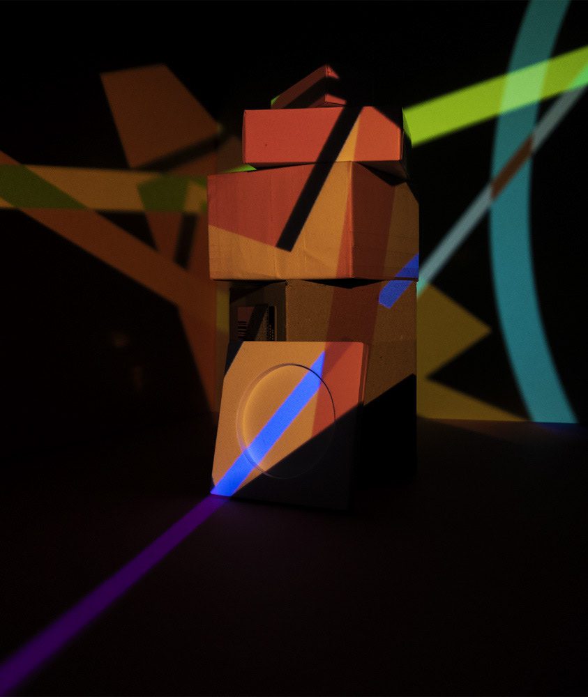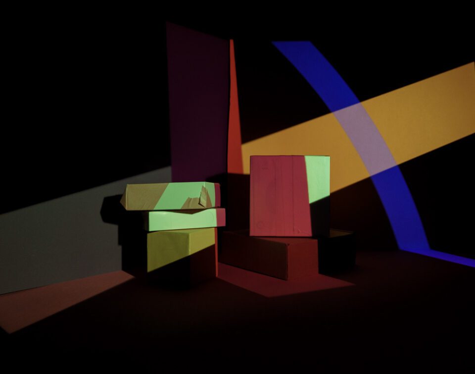 VH: The first round of image-making was very intuitive. I used cardboard boxes because they were what I had available, the lighting patterns for the projected light sources were created manually in graphic design software and the arrangement of objects, as well as the editing, was done largely on instinct. For the newer iteration, I shifted my focus towards capturing the most accurate and refined image directly in-camera. This allows me to devote more attention to aspects such as lighting and the overall scene. Since the setup is a fully controlled environment, it made sense to take full advantage of that control.