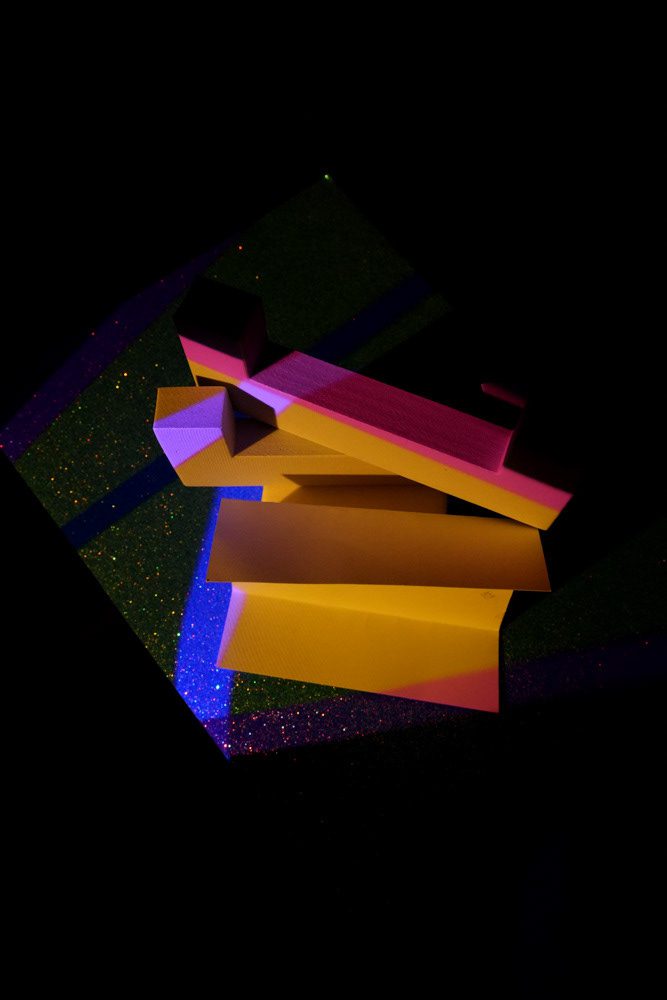 VH: At first, I worked with found objects, created light patterns by hand, and did a “dirty,” rough editing process. Then I moved to using found objects along with some paper pieces and hand-drawn patterns, while cleaning up the editing a bit. Right now, I’m focusing on colored paper pieces to emphasize color and structure, using mathematically defined lighting and cleaner editing. Later, I started making paper forms that are mathematically designed and cut with a cutting plotter, still using precise lighting and polished editing. Eventually, I realised I could simulate almost the entire process in three dimensional modeling software and then, with the algorithms I’ve built, translate it into physical form.