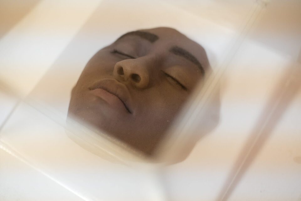 RD: My practice always begins from a place of curiosity – a kind of slow, personal research that often turns into obsession. For Untitled, I was thinking about what it means to make an object without reference or categorisation, something that exists in-between: part figure, part abstraction, somewhere between technology and flesh. I spent a few weeks reading, sketching and testing materials to develop a framework before I began making. The technical process is equally critical. Working with a live model, I built the first mould using silicone gel, plaster bandages and lubricant, which becomes a strange choreography between body and material. It rarely works on the first attempt, so I remake and refine until the mould feels right, then move on to secondary casts in clay and liquid plastic, reverse-engineering the form until the surface holds the detail I need. Colour is the most challenging and political part. I spend three to four weeks mixing silicone pigments and testing hundreds of swatches to create a brown tone that industry palettes rarely support. Each attempt became a microstudy in chromatic politics. When I feel that it is right, I pour, let the mould cure, and then begin to bring life back into the piece by adding hair, pigment, makeup and texture. These gestures aren’t just aesthetic; they’re about presence, about translating the body into something material, and insisting that it remains seen. The process as a whole sits between tactile, methodical and obsessive, but relies on translation: from body, to material, to concept.