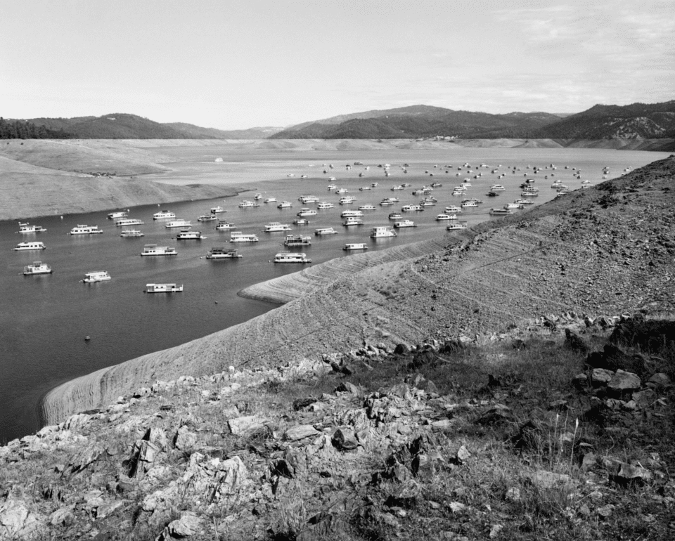 Mimi Plumb spent more than five decades observing the western United States subtle disquiet and enduring beauty. She was born in 1953 and raised in the San Francisco suburb of Walnut Creek. As a teenager, she began taking photographs, capturing the rhythms of suburban life during a decade of profound upheaval. In her early series The White Sky, Plumb depicts adolescents navigating uniform streets and abandoned construction sites, rendering the harsh Californian light with an intensity that amplifies both the absurdity and the pathos of everyday existence. Her images convey an empathy for her subjects whilst also registering the tension between human aspiration and the constrictions of environment. Her work evolved through Landfall and The Golden City in the 1980s and 1990s, and so, she turned her focus to landscapes scarred by development, natural catastrophe and militarisation, using the human figure as a conduit for broader cultural unease. Today, her recent work in The Reservoir continues this investigation, showing drought-stricken landscapes alongside the quiet resilience of those inhabiting them.