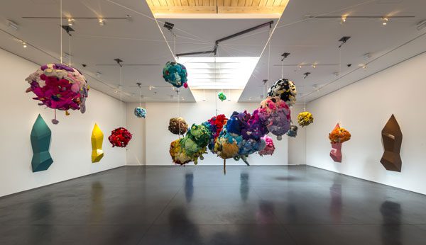 1. Mike Kelley. Deodorized Central Mass with Satellites. 1991/1999. Plush toys sewn over wood and wire frames with styrofoam packing material, nylon rope, pulleys, steel hardware and hanging plates, fiberglass, car paint, and disinfectant. Overall dimensions variable. © Estate of Mike Kelley. Images courtesy of Perry Rubenstein Gallery, Los Angeles. Photography: Joshua White/JWPictures.com.