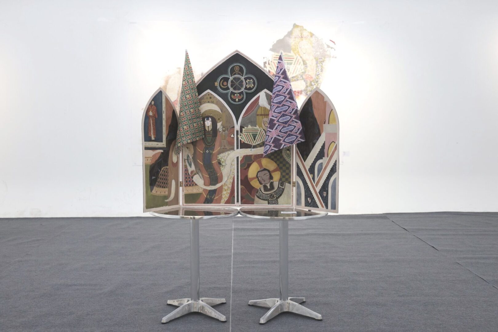 A major work to highlight is Clover (2024). This intricately designed, multi-paned window sculpture is the result of long-term research in a diverse area of East London, home to communities with Asian, Arab, African and European heritage. “As residents arrived from different parts of the world, they brought with them their own visual symbols, totems and decorative languages,” the artist explains. “Over time, these elements have been continually reassembled, hybridised and reinterpreted within the shared space – resulting in a distinct visual language specific to the community.” Zorg met with local residents and listened closely to their stories, learning about Buddhism, ancient Egyptian mythology, and Christian and Catholic traditions. He observed how these influences have shaped the visual fabric of the neighbourhood, appearing across shopfronts, signage and everyday decoration. All of this informed the final design for Clover – a multi-layered sculptural window in which these motifs are deconstructed and reassembled.