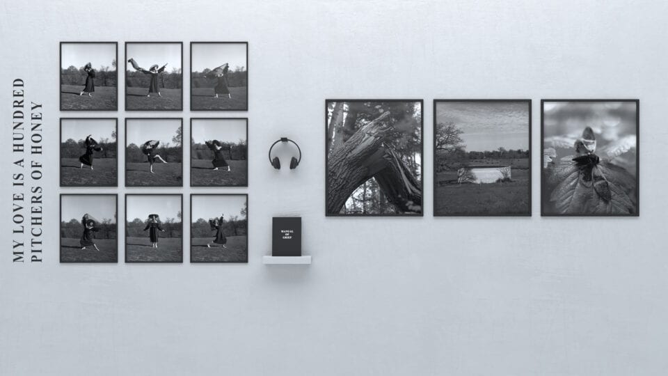 London-based artist Naomi Joanne Delorme is interested in grief. In her latest project MY LOVE IS A HUNDRED PITCHERS OF HONEY she attempts to create a MANUAL OF GRIEF alongside an exhibition and soundscape to explore the contemporary Western relationship with grief in comparison to the ancestral grief practice of keening. A multidisciplinary practitioner, Delorme’s work combines visual art, documentary and writing. Upon graduation from LCC she is due to commence an MA in Writing at the Royal College of Art in September. She intends to develop her combined practice and specialise in grief, identity, culture and changing narratives.