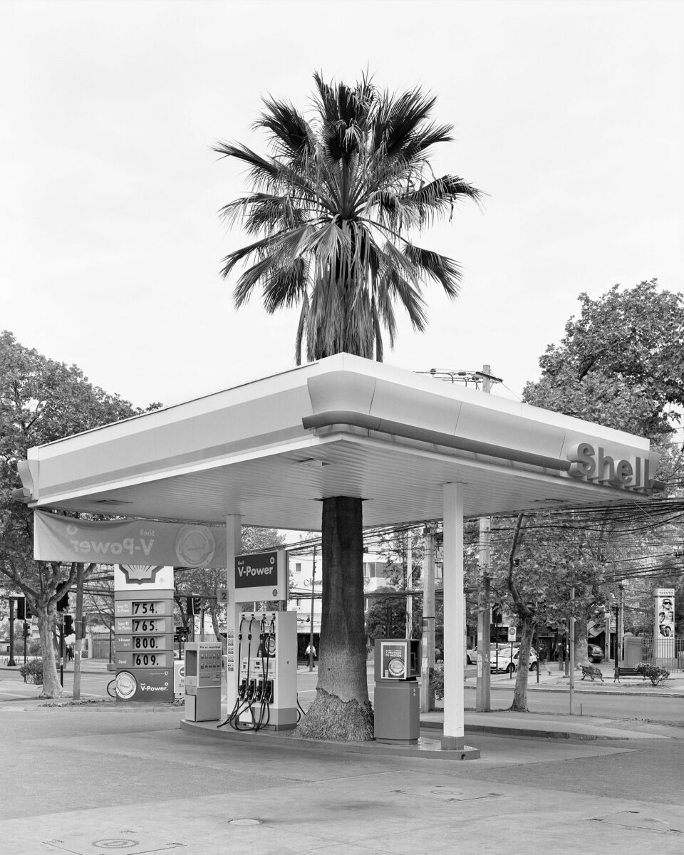 One palm emerges from the roof of a gas station. Another appears from the confines of a car showroom. Photographer Sebasatián Mejía navigates the city of Santiago, Chile, recording trees growing in surprising places. Highlighting a tension between humans and the landscape, the images explore the unexpected results of urban design. The images are on view in Trees, the latest exhibition at Fondation Cartier pour l’art contemporain, Paris.