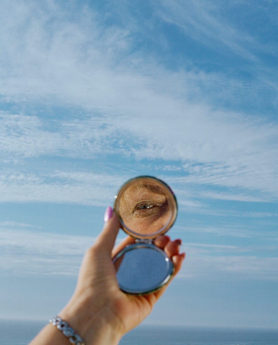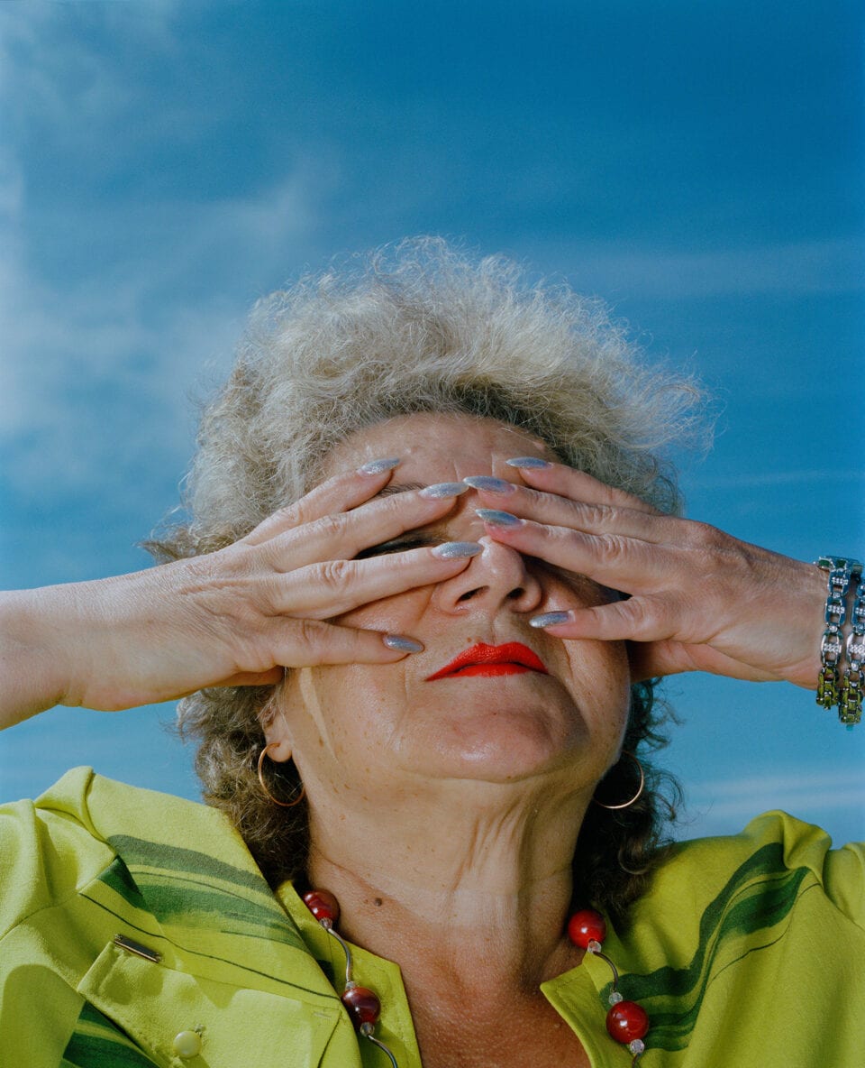 Taken in Grebennikova’s tiny hometown of Nevelsk, Obsession of Return is a series of fashion images capturing the photographer’s grandmother. Full of nostalgia, the bold portraits reference her Russian culture. They also celebrate her grandmother’s style – which had a heavy influence on the artist growing up. Set against bright blue skies, eyes are reflected in mirrors and hands cover faces.