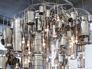 A recent interest is the creation of vessels, often from ceramics, which become idiosyncratic musical instruments as the empty space within resonates in response to a particular musical note, and, when amplified with microphones and sound systems, creates a soundscape of harmonics feeding back – the sound of an absence singing. In Silence Is Golden – a new work for Ikon – among a series of these musical objects are three glass spheres, each holding an actual-size golden model of the tiny bones of the inner ear that make hearing possible, but sealed silently inside crystal.