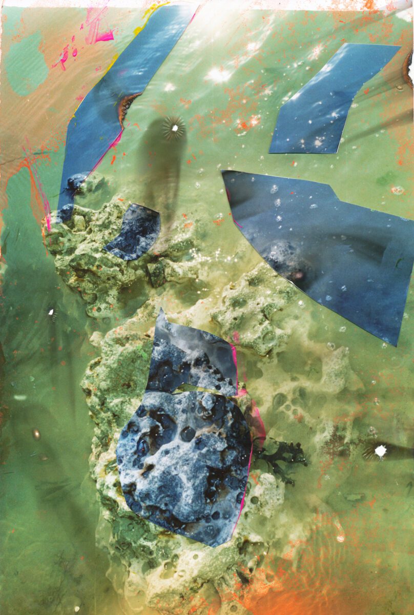 3. Veronika Pot, Bue on green Archival pigment print on dibond, paint, ceramic shelf – 2022, Base-Alpha Gallery, Veronika Pot.