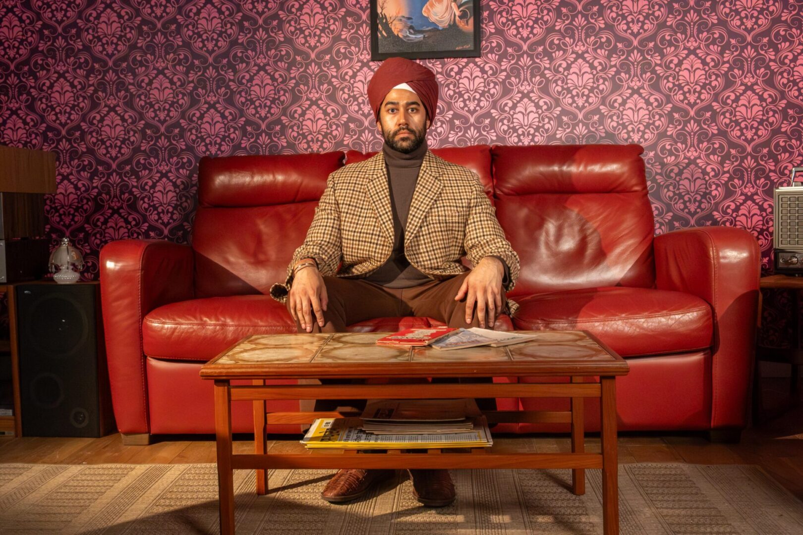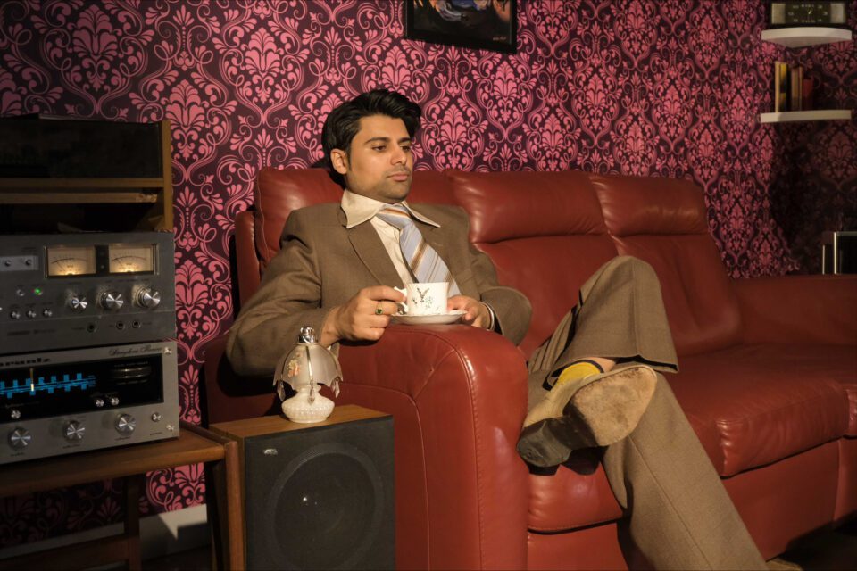 MV: Hardish had many items in his archives and my father also had his own collection, which he gave to the gallery. For the 1970’s film, I was able to use his books, magazines and ornaments that were all from our home. The key was in the detail. We had video footage and photos from that period in the living room, which allowed us to recreate it all from scratch. Authenticity was really important, so I used Costume East, who have a huge supply of outfits from that era. The actors also grew their hair and didn’t shave, so we had the moustaches and side burns. My father wore a turban in the 1970’s, which we had to handle with care, as it is a sacred item. The purple velvet paisley wallpaper was also very significant and we managed to find a way to recreate that. The films are there to enhance the experience of being in the space.
