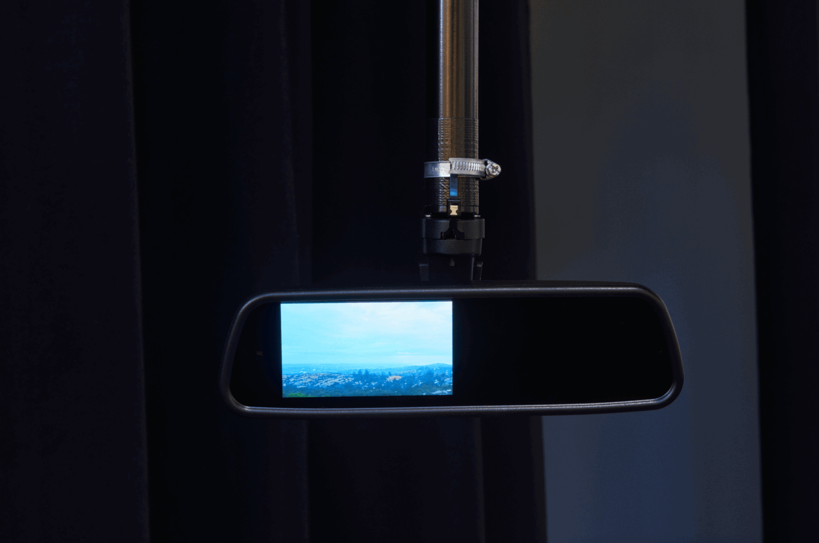 Antipodes III continues this investigation through a suspended rear-view mirror, onto which images of Kinmen – militarised yet serene, empty yet resonant – are projected. Sia draws inspiration from Marshall McLuhan: “We look at the present through a rear-view mirror. We march backwards into the future.” By inverting the landscape and filtering it through reflective surfaces, she literalises this insight, highlighting the liminality of the present, poised between nostalgia and anticipation. Sia transforms the act of looking into a contemplative practice, disrupting habitual modes of reception and inviting viewers into a space where vision and memory coexist.