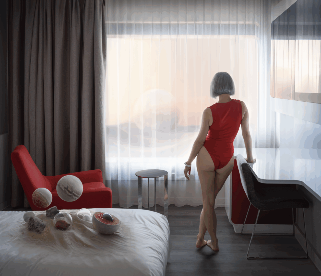 Belkina makes staged photographs with materials from around her house. She crafts strange landscapes from paper, stone and flour, in which solitary female figures gaze out of windows onto unfamiliar skies. Smooth pearlescent eggs hover above the ground, prompting questions about what is waiting within. In each image, there is a feeling of isolation as lone figures ponder seemingly empty environments and gaze upon wide horizons, almost as if they are confined to their room. Perhaps that’s the point of Belkina’s ethereal photography – they are a reminder that as we dream of space, most people will never leave the Earth.