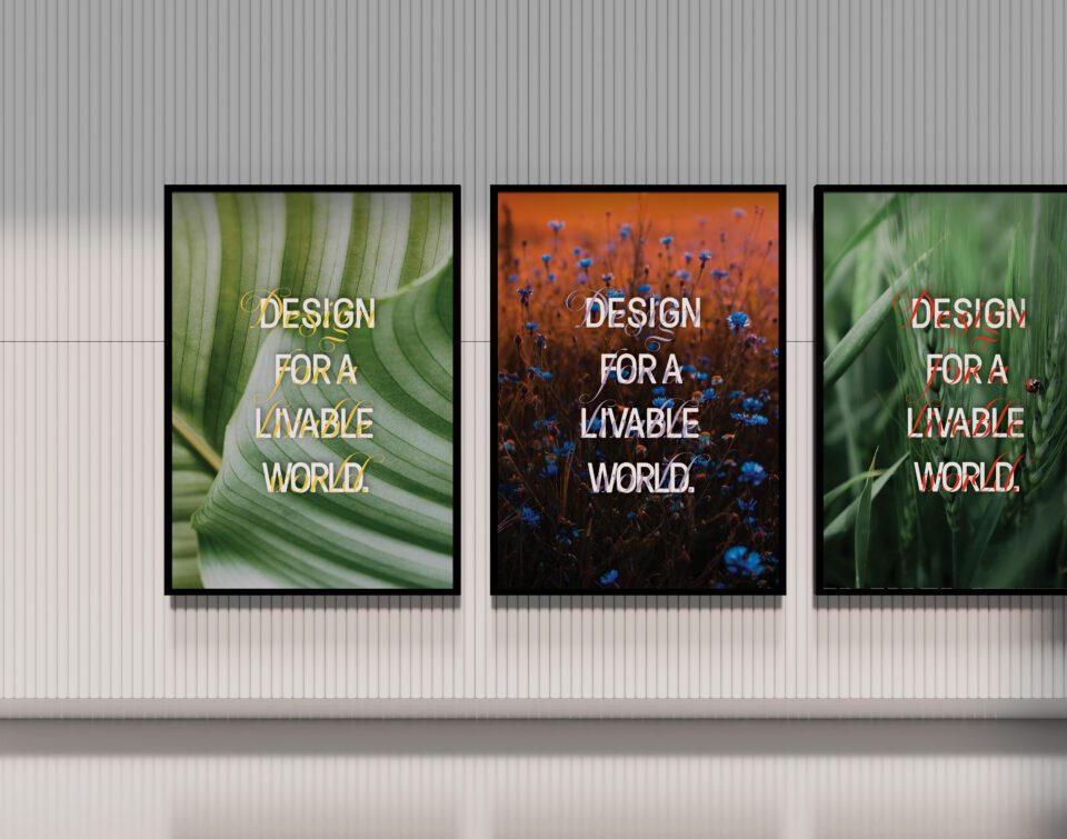 Design for a Livable World is another example of Jia’s visually innovative approach. The project, created for SWA Group, employed abstraction to translate complex principles of landscape architecture, urban planning and sustainability into accessible visual narratives. Rather than relying on literal renderings of built projects, Jia developed a layered visual language that merged expressive typography, macro-scale natural photography and abstract urban patterning. Natural imagery plays a central role: broad green leaves symbolise ecological resilience, while a ladybird resting on blades of grass introduces intimacy and human scale. These organic elements are interwoven with patterns and structures that echo modern urban systems, visually demonstrating the integration of natural and built environments. Here, Jia elevates marketing beyond conventional corporate design to something new.
