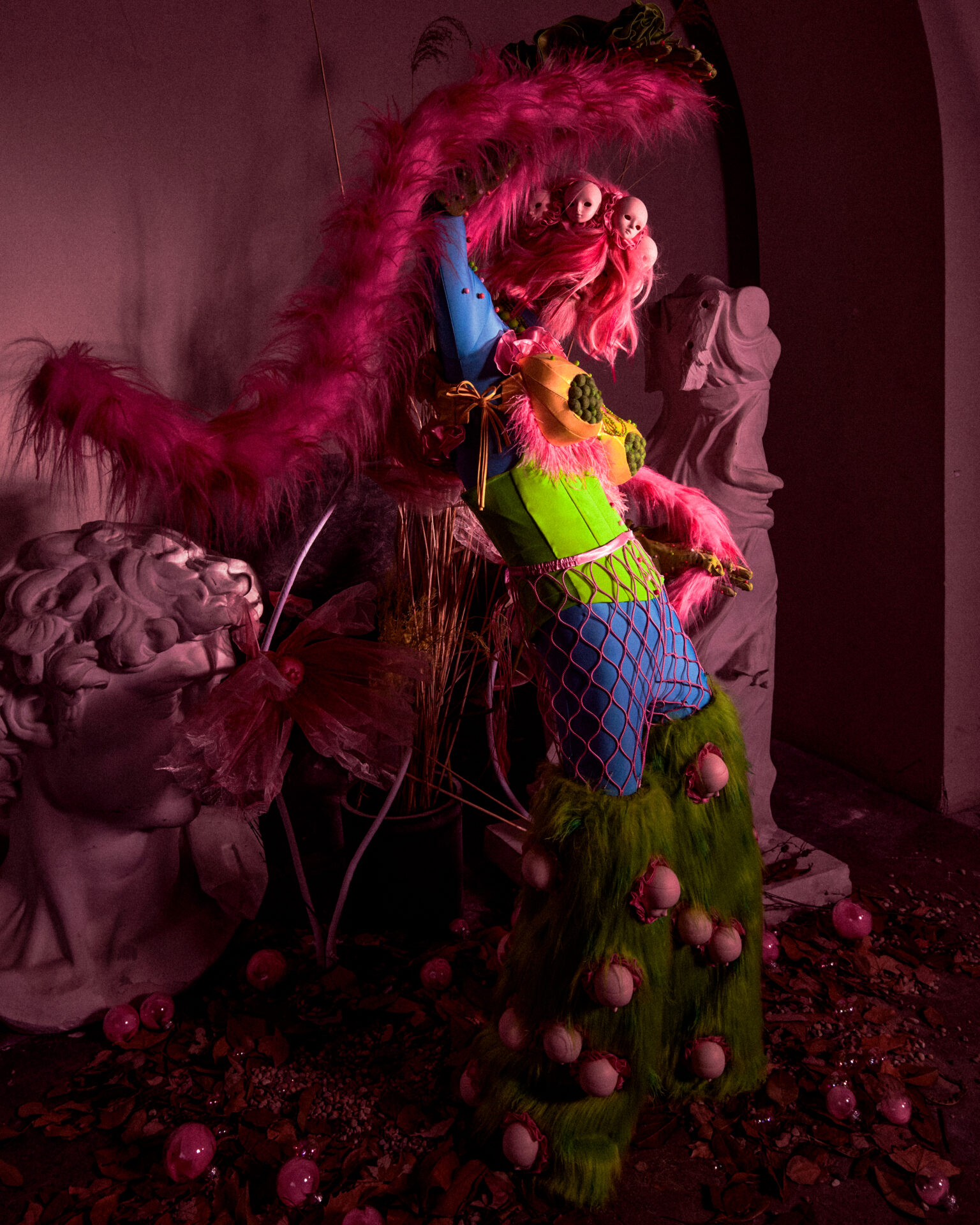 Chinese costume designer Kaiqi Zhang is based in the UK, where she gained a BA from UAL. Historic references and costumes from Asia and Europe inspire her innovative designs. Her unique personal style is then achieved through a specific combination of different techniques and fabrics. The work shown here is Actor, a character in Zhang’s play which is based upon Camus’ essay The Myth of Sisyphus.