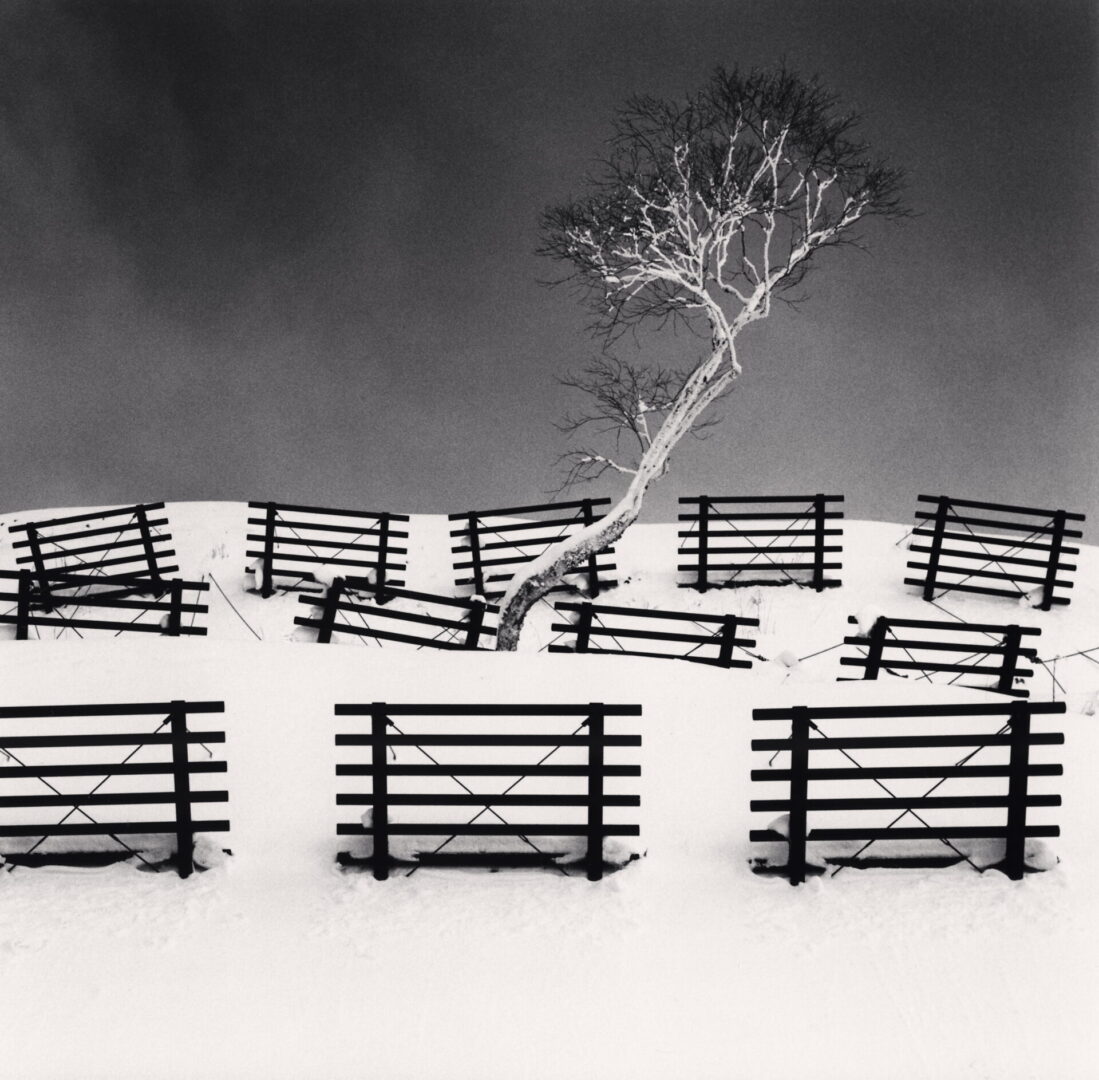 Shin Shin (しんしん) is a Japanese onomatopoeia that describes the softened hush of falling snow. The literal translation of “Shin” is “silence”, or more accurately, the absence of sound where there was sound before. The word reflects the sensation that the world has been turned down, muffled by a blanket of white across rooftops and tree branches. It also captures the meditative stillness that runs through Michael Kenna’s (b. 1953) work. The photographer is best-known for enigmatic, graceful and hauntingly beautiful images of nature, often taken at dawn or in the dark hours of night. A new exhibition at The Photographers’ Gallery, London, brings together a selection of black-and-white prints in which snow becomes a veil, transforming the familiar into something contemplative. Through these studies, Kenna invites reflection on what lies beyond what we can know, see or touch.